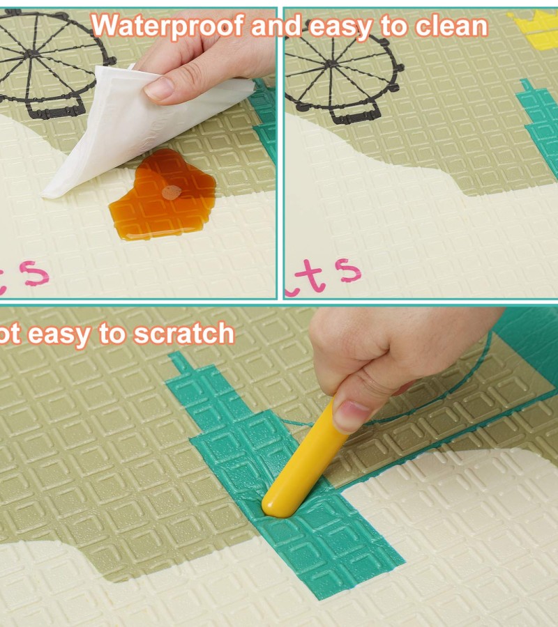 - Superior Quality XPE Material: Our baby play mat is made of BPA free XPE material. The cute patterns on playmat are printed with vegetable oil ink. The product is characterized by the following features; BPA free, non-toxic, no-fading, no chemical odor, comfortable and safe for baby crawling. This is a toddler-friendly mat that guarantees the safety of your baby.