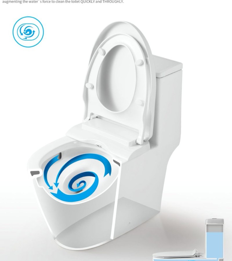 Tiara 918 Rimless Turbo Tornado Flushing 1-Piece Toilet Bowl with Slim Urea Seat Cover