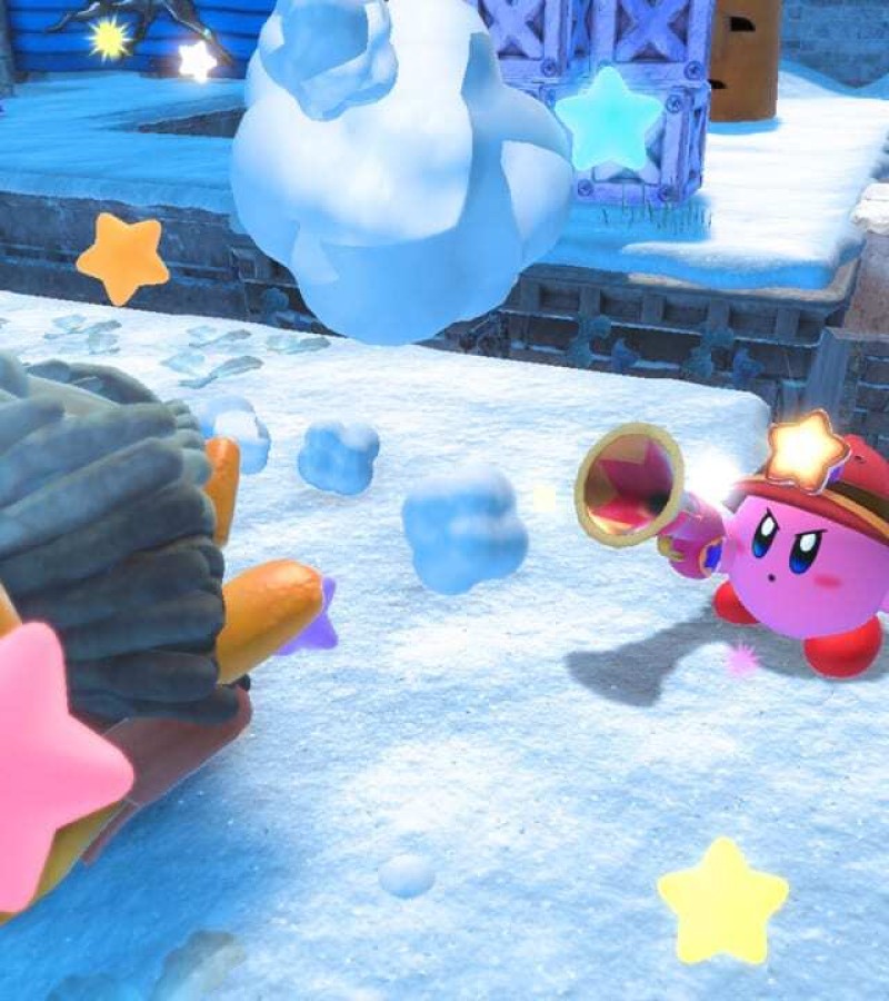 Float over obstacles and fight through enemies on your way to each stage’s goal as you slash, poke, freeze, and hammer using Kirby’s copy abilities.